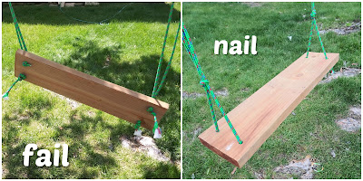 Then a couple weeks later we had to re-hang the swing which brought adventures of its own. While trying to re-wrap the rope we accidentally tossed it too high, twice. Took a ladder and a broom to get it down. Fun stuff.
